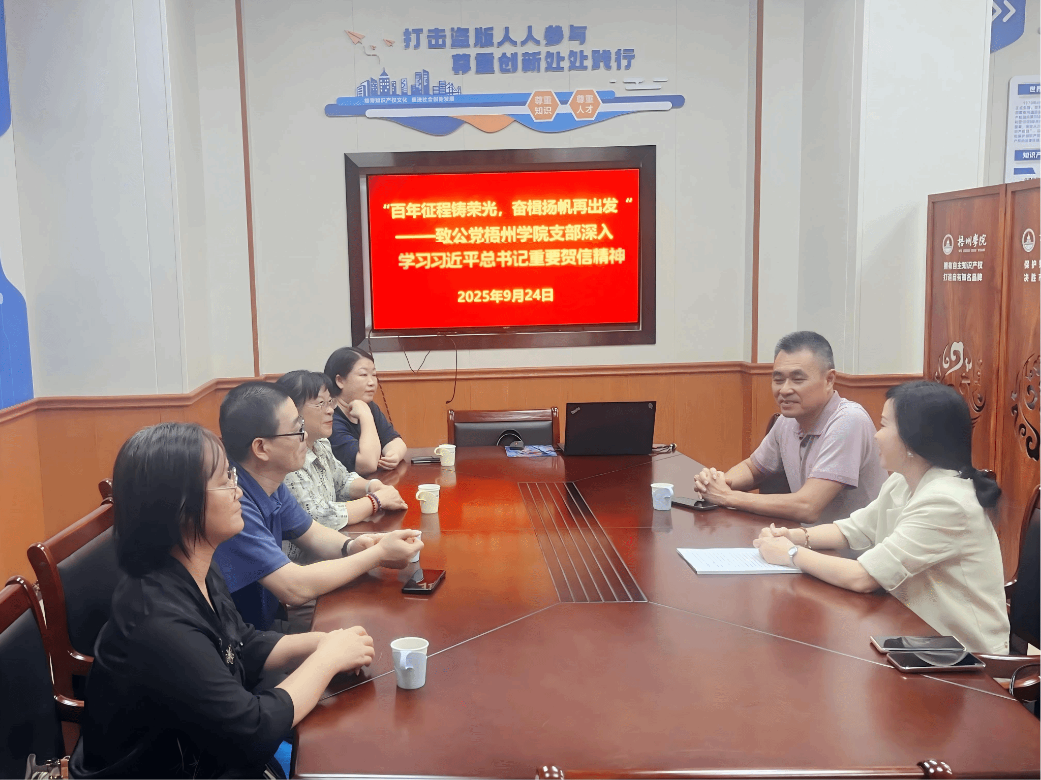 2025年9月24日下午,致公党梧州学院支部在梧州学院明科楼102会议室召开专题学习会,深入学习贯彻习近平总书记致中国致公党成立100周年庆祝大会的重要贺信精神,并结合支部实际研究贯彻落实举措。学校党委常委、统战部部长黄健武应邀列席指导,支部5名党员参与,学习会由支部主委蔡菲菲主持。