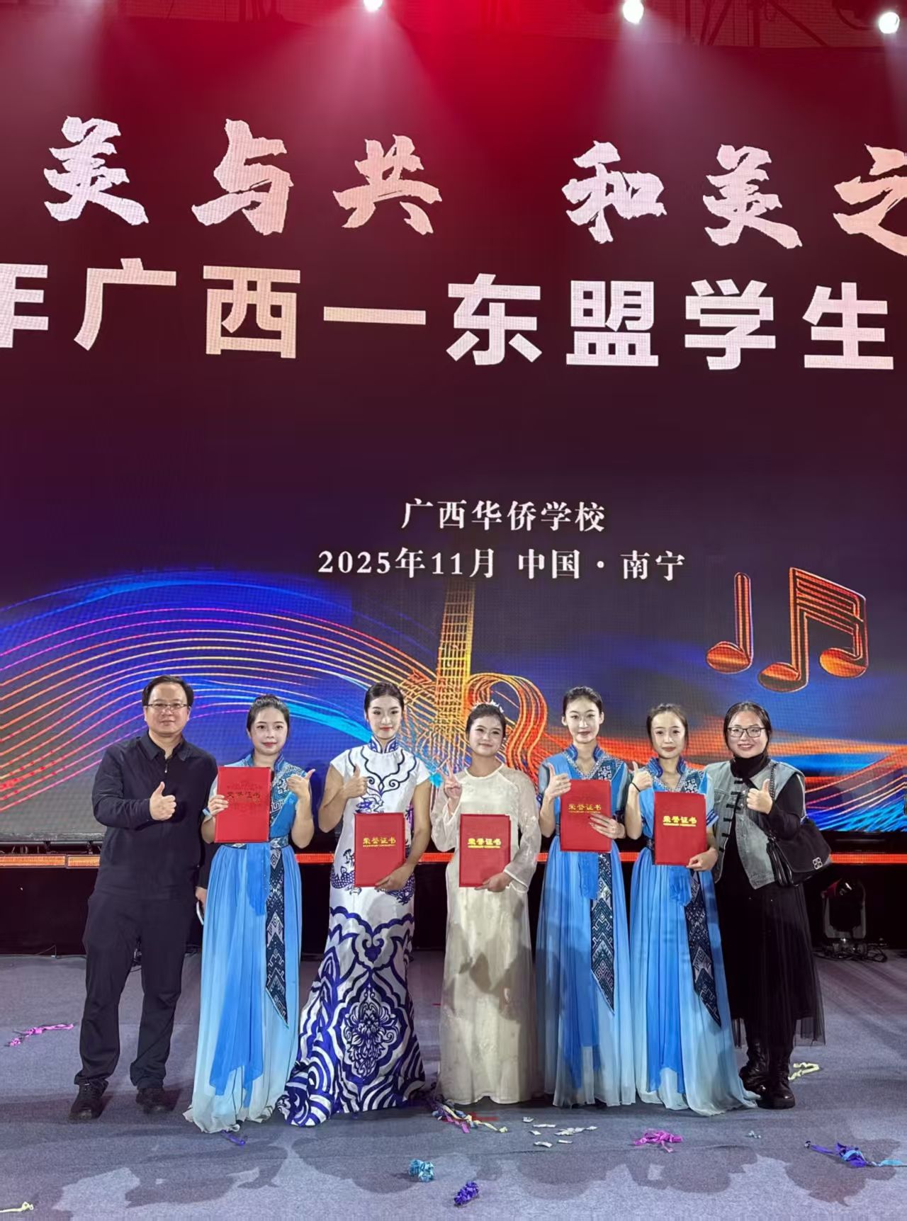 此次佳绩的取得,既是我校学生艺术素养与演唱能力的集中展现,也是学校深耕艺术教育、推动中外民族文化深度交流的成果彰显。未来,我校将持续完善多元化文化交流平台建设,为中外青年学子提供更多的文化交流机会,助力学子在跨文化舞台上绽放光彩,增进中国与东盟国家青年的友谊与民心相通,为构建中国—东盟命运共同体注入源源不断的青春活力。